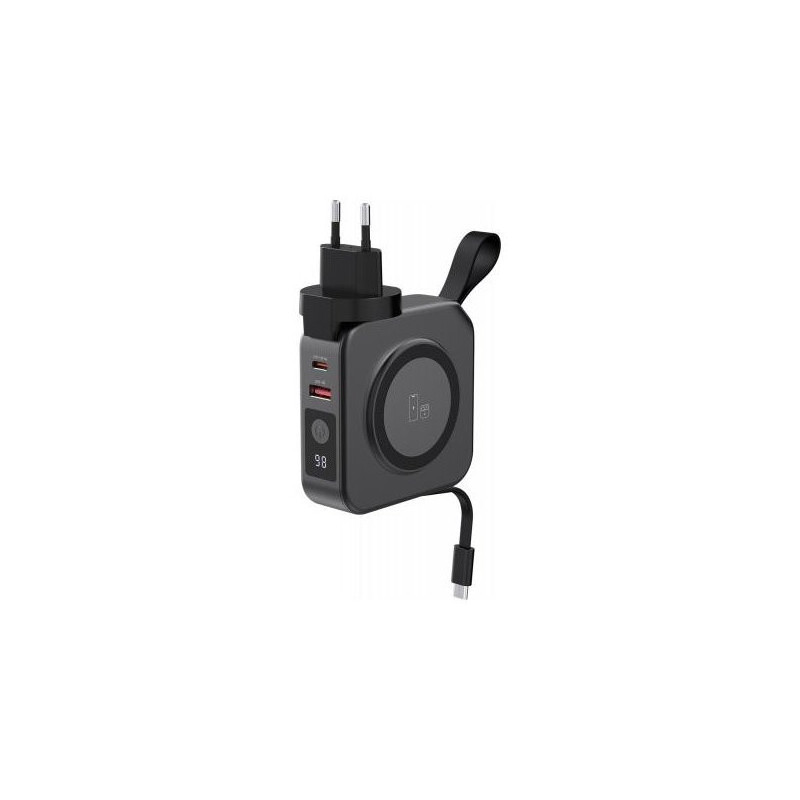 Sa technologie Power Delivery jusqu’à 20 W garantit une charge rapide et intelligente, jusqu’à 3x plus rapide qu’un chargeur standard. Profitez également de la recharge sans fil Qi jusqu’à 15 W pour vos smartphones et écouteurs compatibles. Doté d’un port USB-C, d’un port USB-A et d’un câble USB-C intégré, il offre une connectivité complète sans accessoires supplémentaires. Polyvalent et pratique, il assure autonomie et sérénité à la maison comme en voyage.