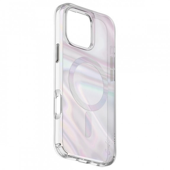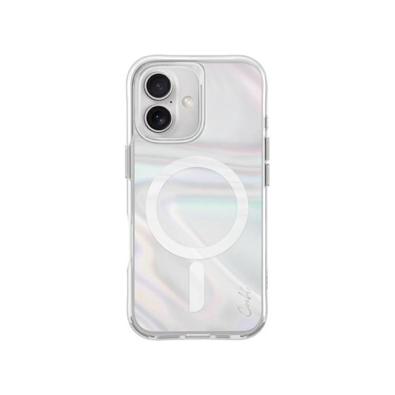 La coque Coehl Savon se distingue par un effet holographique unique, inspiré des reflets irisés des bulles de savon, qui capte et diffuse la lumière à chaque mouvement. Son design transparent sublime le smartphone tout en offrant une protection hybride performante.