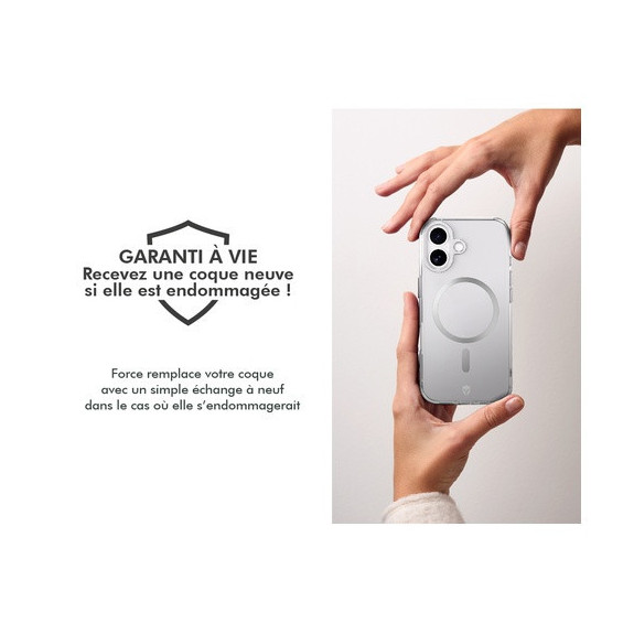 Force Case remplace votre coque avec un simple échange à neuf dans le cas où elle s'endommagerait. Pour bénéficier de la garantie à vie, il vous suffit de créer un compte en quelques clics et d'enregistrer votre produit sur le site https://force-mobility.fr/fr/utiliser-garantie, dans les 30 jours suivant votre achat, muni de votre justificatif. Le service Force vous fait parvenir un produit neuf en échange de votre produit défectueux ou cassé. Une fois par an et sans limite de durée pour que votre smartphone reste toujours parfaitement protégé.