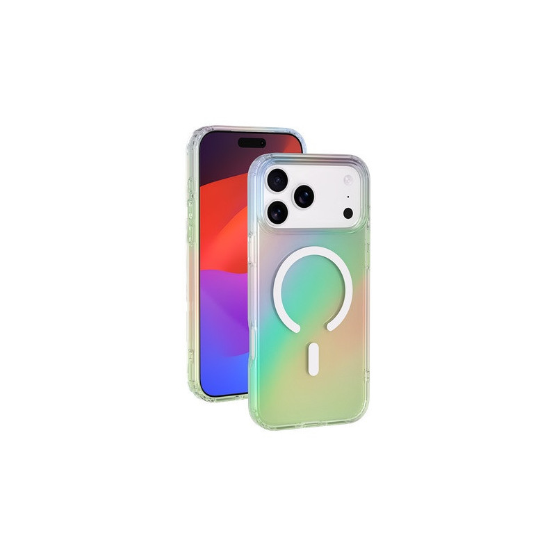 Compatible avec tous les accessoires MagSafe, elle garantit une recharge sans fil rapide et un maintien parfait. Son effet holographique tendance offre un look moderne, tandis que le traitement anti-jaunissement assure une durabilité prolongée.
