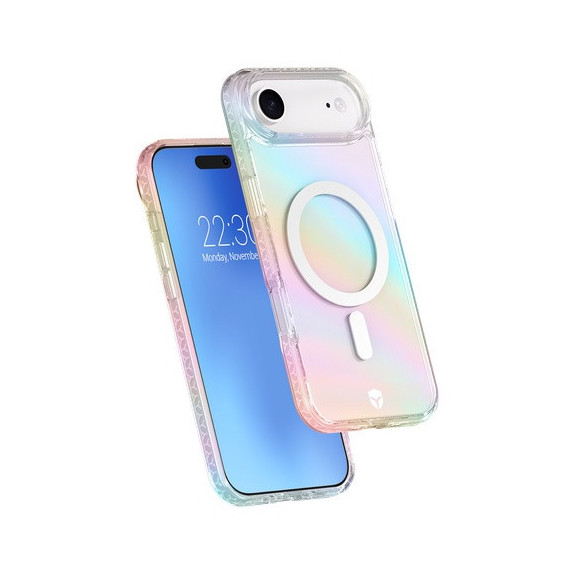 Garantie à vie ! Résistante aux chutes de 3m, la coque Renforcée Air MagSafe Holo de Force Case combine finesse et robustesse grâce à ses technologies exclusives Air Cushion et Tryax. Ses aimants renforcés assurent une fixation optimale sur les accessoires MagSafe.